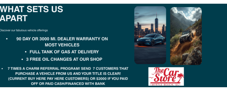 By checking this box I hereby consent to receive customer care text messages and/or phone calls from or on behalf of The Car Store or their employees to the mobile phone number I provided above. By opting in, I understand that message and data rates may apply. This acknowledgement constitutes my written consent to receive text messages to my cell phone and phone calls, including communications sent using an auto-dialer or pre-recorded message. You may withdraw your consent at any time by texting "STOP" or "HELP" for help. See our https://carstoremb.com/privacy for more information.